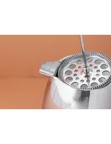Peegelviimistluse ja kumera vormiga elegantne kohvipresskann näeb välja justkui pärit klassikalisest Prantsuse kohvikust. Kahekordsed seinad hoiavad joogi kauem kuumana, samal ajal kui välispind püsib jahe ja käesõbralik. Peene roostevabast terasest võrkfiltriga varustatud kann tagab eriti puhta joogi, tuues esile maksimaalse maitse ja aroomi. Kaunis läige muudab selle pilkupüüdvaks lisandiks igasse kööki või elutoa lauale.