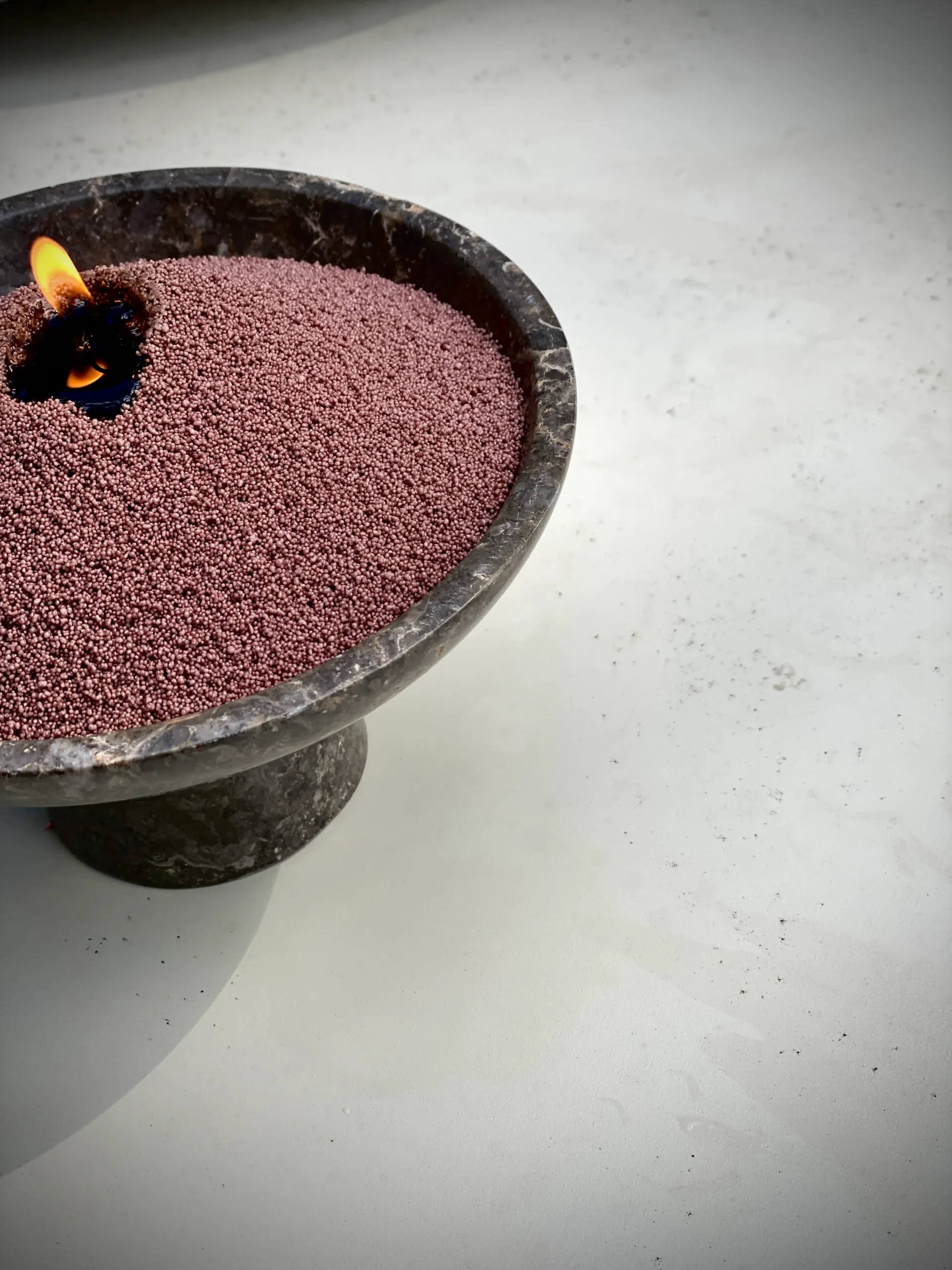 Leia sobiv anum ja vala puuderküünal anumasse. Torka taht puudrisse, süüta ja naudi!